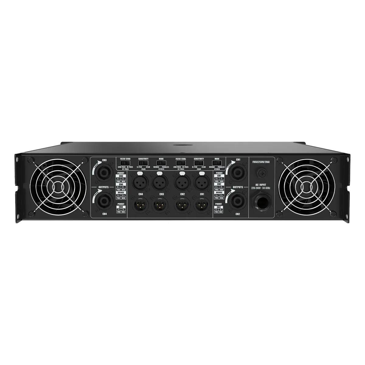 4x 900W @4Ω âm thanh nổi 4x 400W @2Ω âm thanh nổi 2x cầu 1800W @8Ω Cầu 2x 800W @4Ω |
